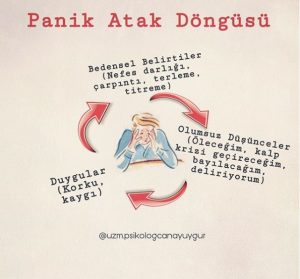 Panik atakların temel özelliği, beklenmeden gelip tekrarlaması, kişiye yoğun bir şekilde korku ve kaygı duygularını yaşatmasıdır. Genellikle stres yaşatan bir olay ile tetiklenir. Atak sırasında kişi nefes darlığı, titreme, mide bulantısı, terleme, baş dönmesi, çarpıntı gibi bedensel belirtiler yaşar. Bu belirtiler ile kişi öleceğinden, kalp krizi geçireceğinden, bayılacağından, delireceğinden ya da kontrolünü kaybedeceğinden korkabilir. Kişi, atak sırasında gittikçe artan yoğun bir kaygı yaşar. Bu kısır döngü şeklinde atak gerçekleşir.