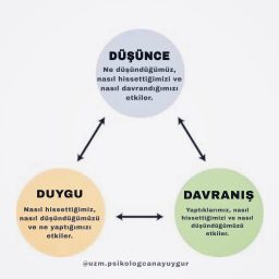 Düşüncelerimiz, duygularımız ve davranışlarımız etkileşim içindedir, her biri bir diğerini etkiler. Yaşamımızda bir olay ile karşılaştığımızda onun hakkında bir düşüncemiz vardır ya da o an …